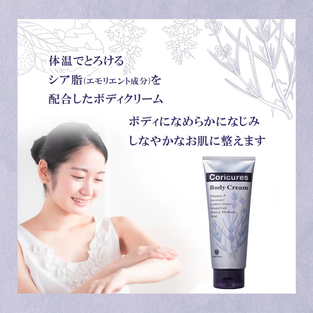 - 体温でとろけるシア脂(エモリエント成分)を配合したボディクリームです。