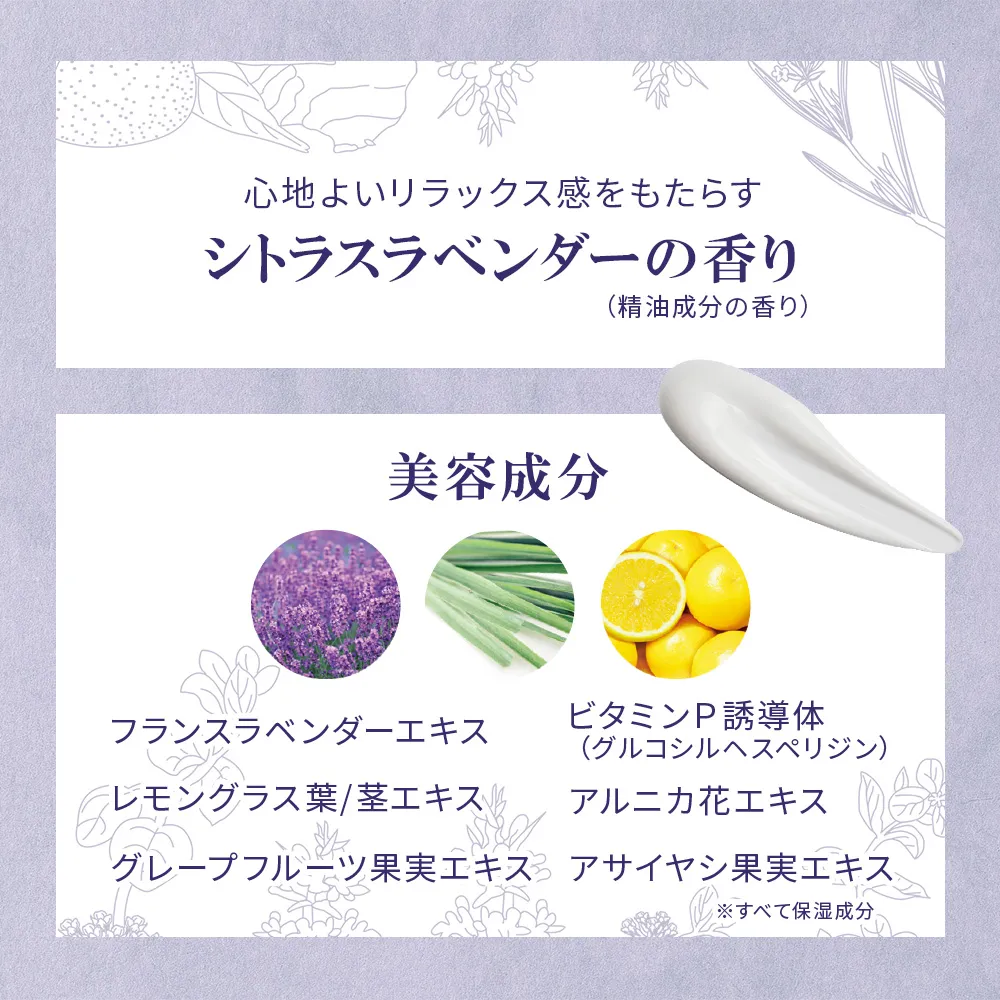 優雅なラベンダーやグレープフルーツを基調にした、シトラスラベンダーの香りです。