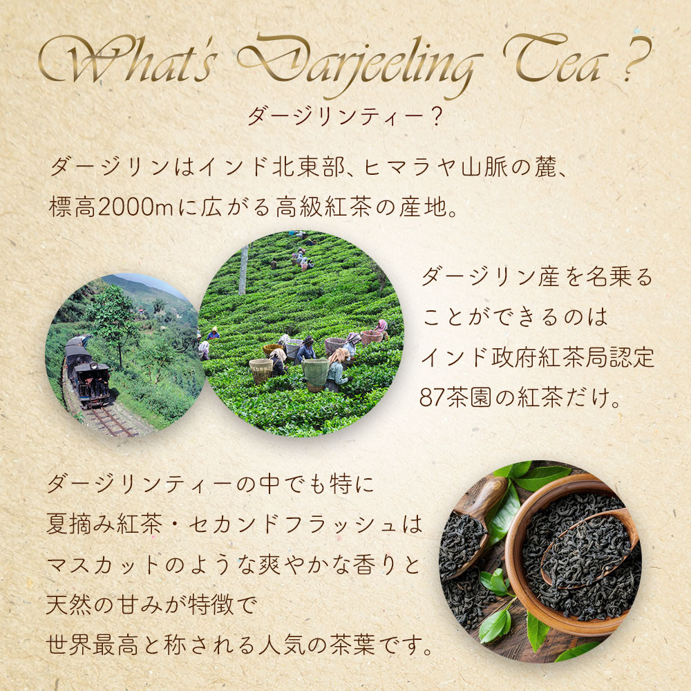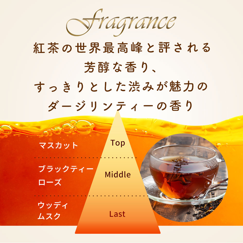 その豊かな香り立ちから、“紅茶のシャンパン”とも称される「ダージリンティー」をイメージした、上品かつフルーティーな香りです。