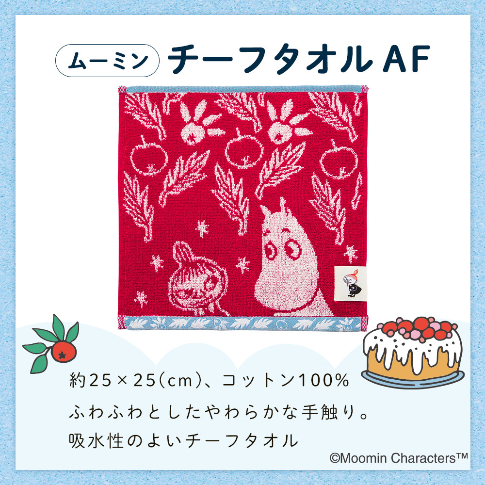 ふわふわとした柔らかな手触りで吸水性のよいチーフタオルです。コスメと組み合わせしやすい可愛らしいデザインです。刺繍タグは「ムーミン」と「リトルミイ」の表裏両面仕様。贈り物にもおすすめです。綿100%。