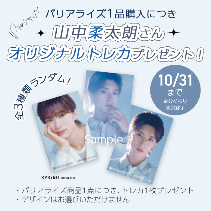 「バリアライズ」ライン1品購入につき、山中柔太朗さんのオリジナルトレカ1枚を先着でプレゼント!