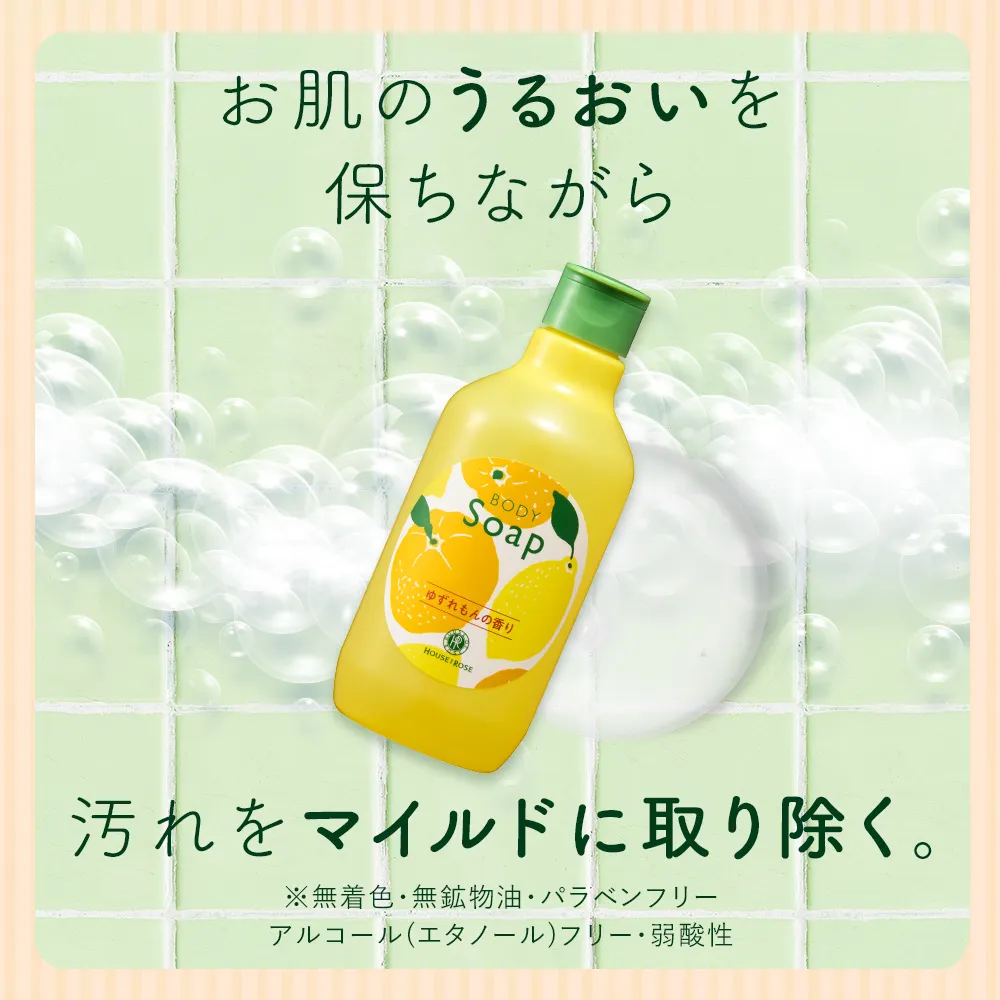 お湯を含ませたスポンジ、タオルなどに適量をとり、よく泡立ててからご使用ください。その後、十分に洗い流してください。ユズ果実エキス・レモン果汁・グリコシルトレハロース(すべて保湿成分)水、ココイルメチルタウリンNa、ラウリルベタイン、ココアンホ酢酸Na、香料、クエン酸、ユズ果実エキス、ユズ果皮油、レモン果汁、レモン果皮油、グリコシルトレハロース、加水分解水添デンプン、ポリソルベート80、トリイソステアリン酸PEG-120メチルグルコース、BG、塩化Na、サリチル酸Na、フェノキシエタノール