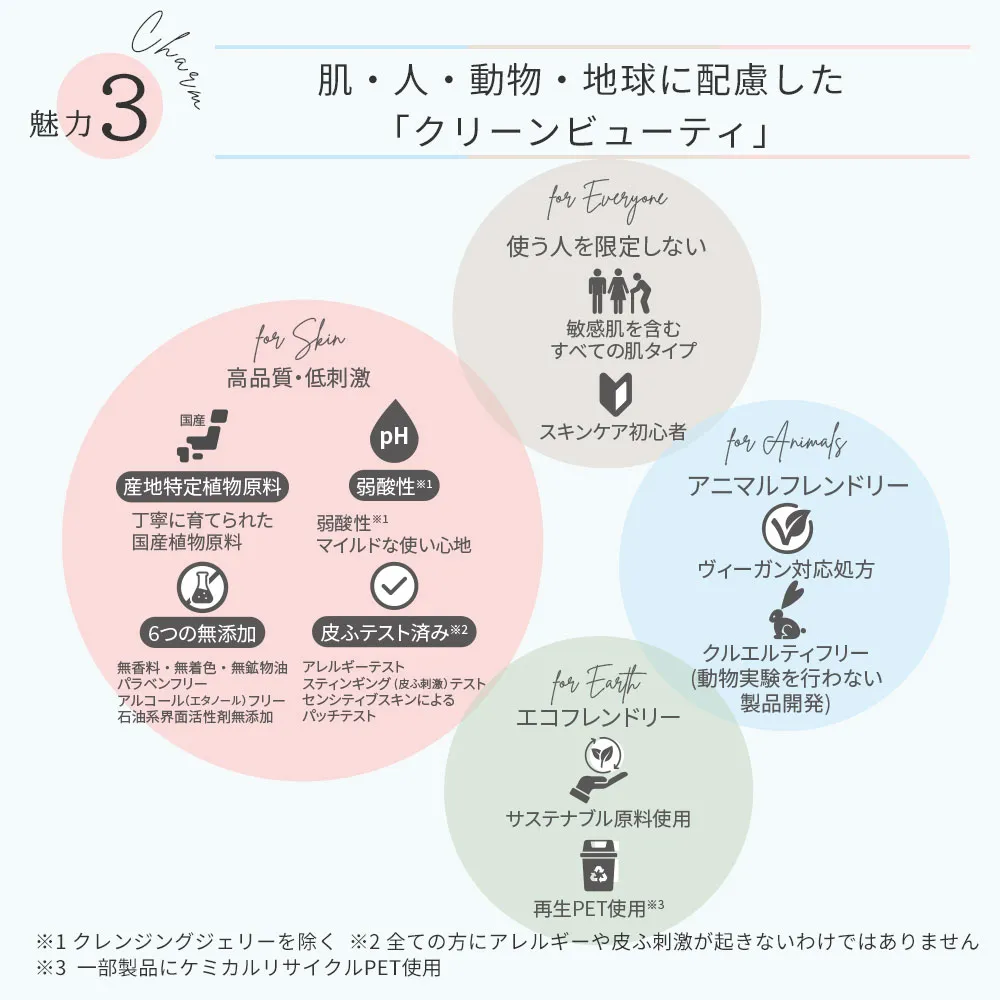 ※4Universal(for Skin:高品質・低刺激/for Everyone:使用する人を限定しない/for Animals:アニマルフレンドリー/for Earth:エコフレンドリー):誰もが心地よくお肌をうるおし続けるための4つの約束(自社製品開発基準)です。
