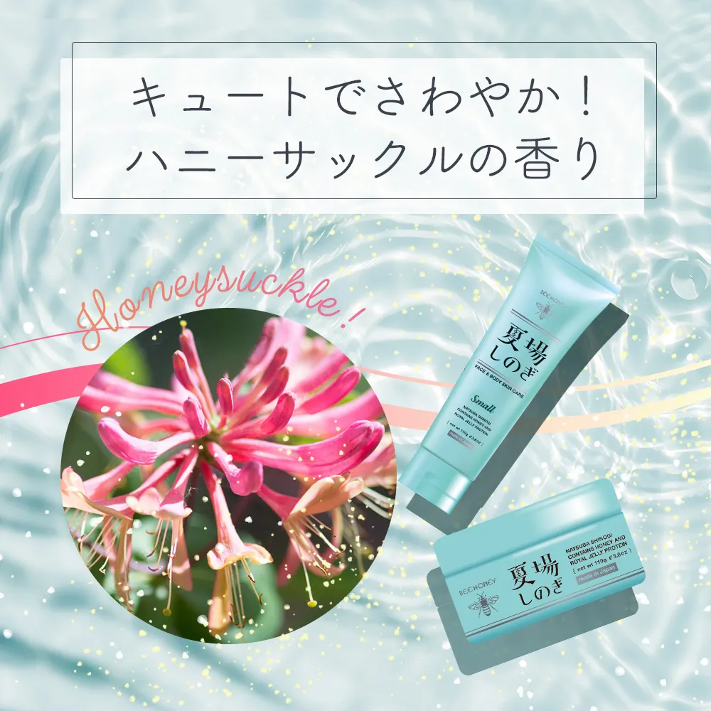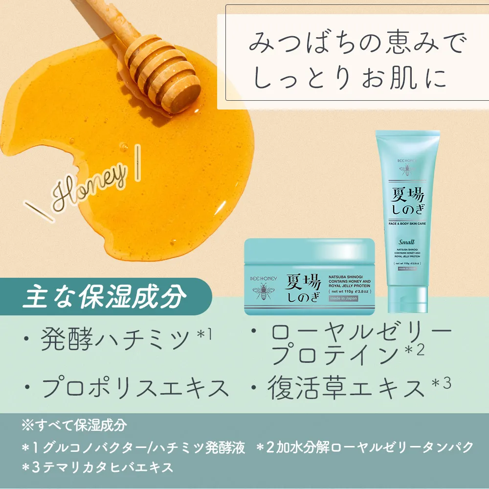発酵ハチミツ*やローヤルゼリー(*2)、プロポリスエキスなど、みつばち由来の保湿成分を配合した全身用ジェル状美容液です。 みずみずしく心地よい感触で、角層にじんわりと浸透します。 紫外線などによるダメージを受けて乾燥したお肌をなめらかに整えます。透明感のあるみずみずしいハニーサックルの香り。