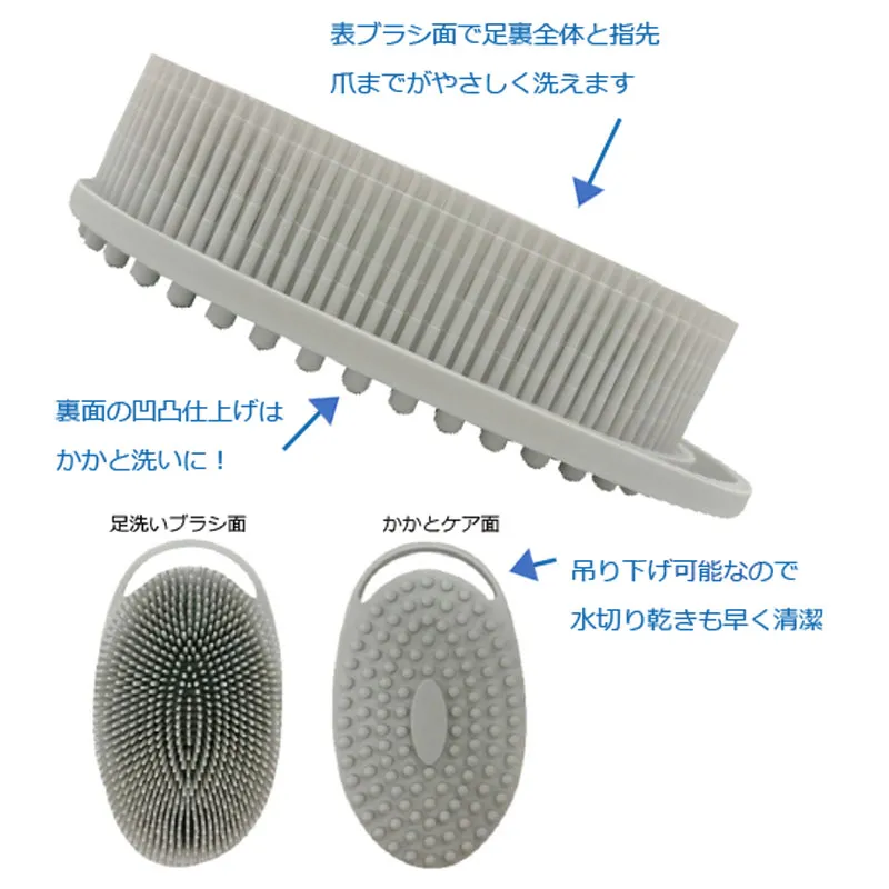 シリコン素材でお肌にフィットし、かかとや足の裏だけでなく、指の間をやさしく洗うことができます。