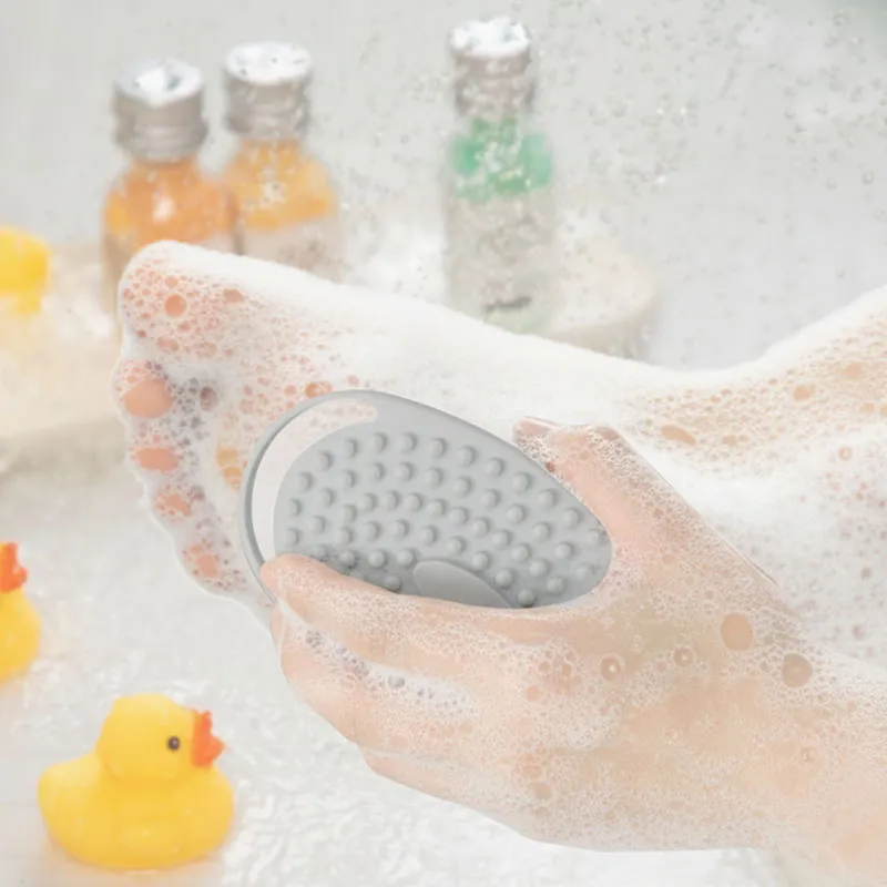 ブラシに水をかけ、石けんやボディソープを適量つけて、ブラシを動かしながら洗います。シリコン